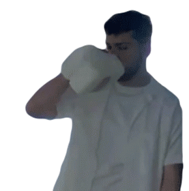 Bazzi, also known as Dont Judge Mo, drinks a gallon of milk directly from the jug, looking thirsty and staring.