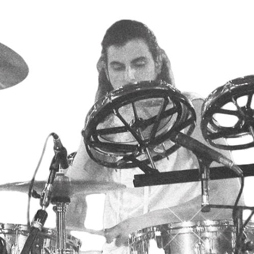 Danny Wagner, the drummer for Greta Van Fleet, intensely plays the drums during a performance, showcasing his powerful drumming skills.