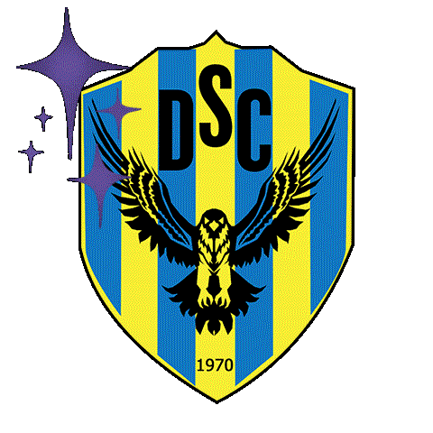 A vibrant blue and yellow striped shield logo for Duhok Sport Club, featuring a black eagle and the text 'DSC 1970'.