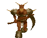 a pixel art of a monster with horns holding a scythe and a stick .