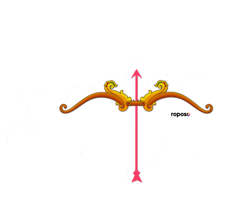 An animated sticker wishing 'Happy Vijayadashami' with a traditional golden bow and a pink arrow, celebrating the Dussehra festival.