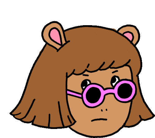 DW Read from Arthur looks up with an annoyed, skeptical expression, wearing her signature pink glasses.
