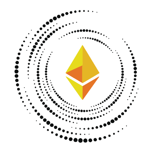 An animated sticker featuring the iconic Ethereum logo at its center, surrounded by a dynamic, swirling vortex of black dots.
