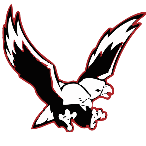 Stylized black and white eagle with red outline, wings spread, embodying strength and martial arts spirit.