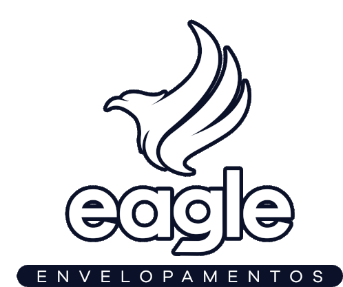 Animated logo for Eagle Envelopamentos, featuring a stylized eagle and text transitioning from outline to solid dark blue.