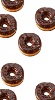 A delightful seamless pattern of chocolate-frosted donuts adorned with colorful sprinkles, perfect for food lovers.