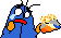 A pixel art animation of a blue character with a red mouth eating a smaller, yellow-orange character.
