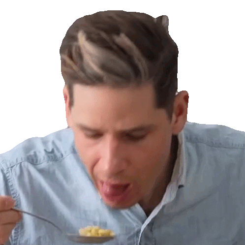 Brian Lagerstrom happily eats a spoonful of cereal, enjoying his breakfast with enthusiasm.