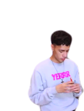 a young man wearing a sweater with the word terror on it is holding a toy .