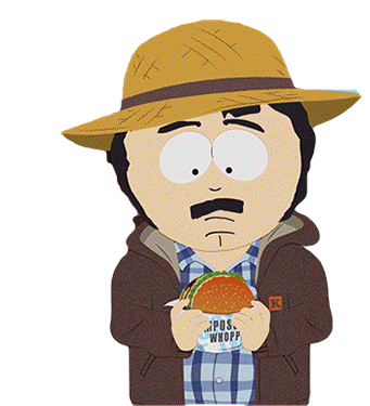 Randy Marsh from South Park enthusiastically eats a burger, a nod to the 'Let Them Eat Goo' episode.