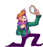 Eddsworld's Matteddsworld character animated, kneeling and admiring himself in a small mirror.