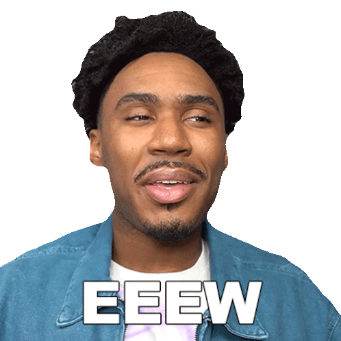 A man in a blue jacket reacts with a disgusted expression, saying 'Eeew' in this Imurgency sticker.