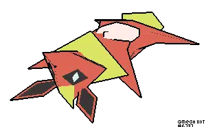 A pixel art Eevee in the frantic style of Pizza Tower, possibly resembling Flareon, displayed on a retro television screen.
