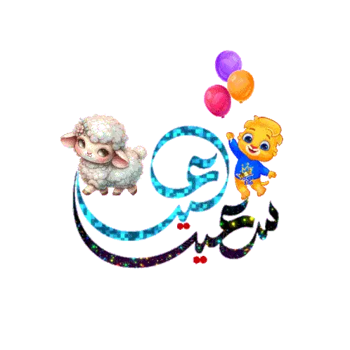 Animated greeting for Eid Mubarak featuring two golden ornate lanterns gently swaying with sparkling lights.
