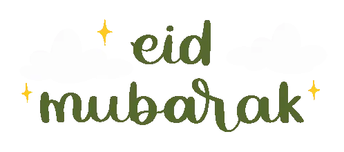 Celebrate Eid with this animated sticker featuring 'Eid Mubarak' in elegant gold lettering on a sparkling white background.