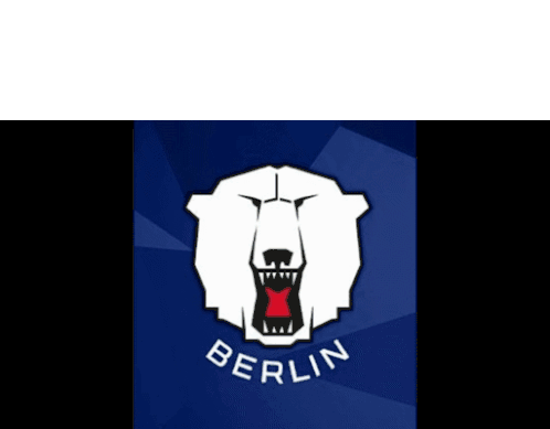 Animated logo of Eisbären Berlin, featuring a white polar bear head with an open mouth and the city name.