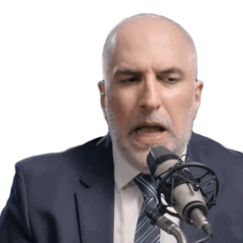 a bald man in a suit and tie speaking into a microphone