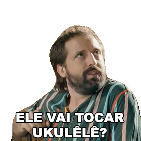 Gregorio Duvivier from Porta dos Fundos, with a questioning look, asks 'Is he going to play ukulele?'