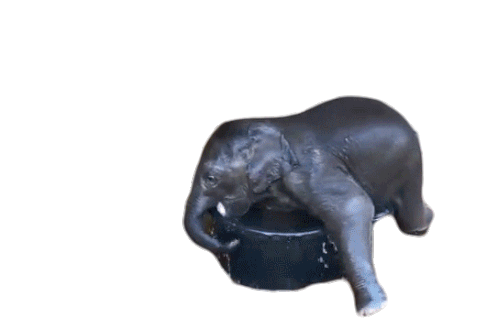 A cute baby elephant playfully splashing and cooling down in a small tub of water, enjoying a refreshing swim.