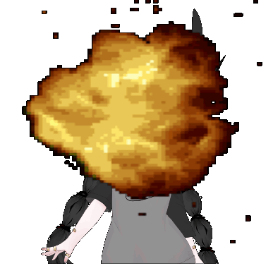 Elfin Elfinpsyop character with a pixelated explosion erupting from her head in an animated sticker.