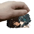 A hand gently holds the adorable chibi character Elixiao Yakshapup (Xiao) from Genshin Impact, a cute and playful sticker.
