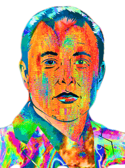 A vibrant, psychedelic art portrait of Elon Musk, featuring a colorful and abstract style. Perfect for digital expression.