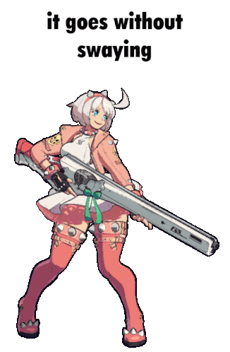 Elphelt Valentine from Guilty Gear Strive sways gracefully, holding her signature large gun.