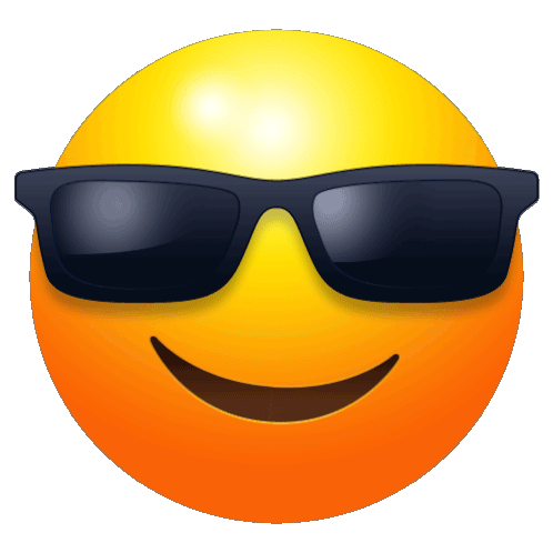 A yellow smiley face emoji wearing black sunglasses and smiling, exuding a cool and confident vibe.