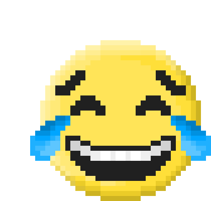 a pixel art smiley face is laughing with tears coming out of its eyes