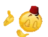a yellow smiley face with a red hat on its head is giving a thumbs up .