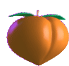 A vibrant 3D animated peach emoji, featuring a distinct 'butt' shape and green leaves, playfully bouncing.