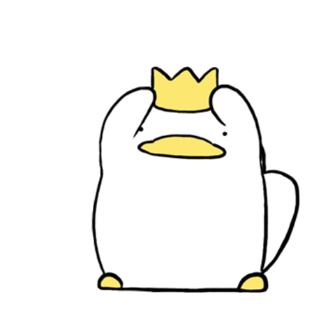 A cute, white cartoon duck-like creature with a yellow beak and feet holds a golden crown, embodying a royal emperor or empress.