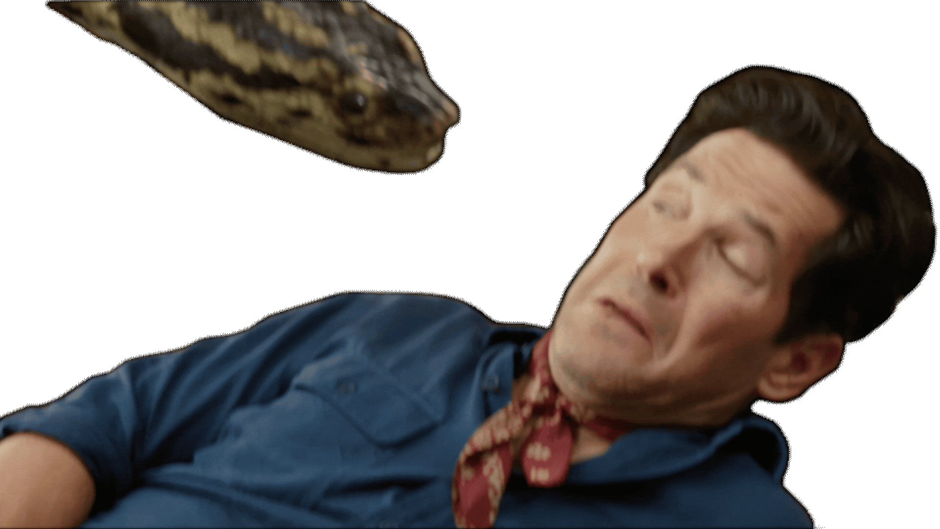 Paul Rudd as Ronald Griffin, lying down with a look of pure dread and eyes closed while an anaconda moves past his face.