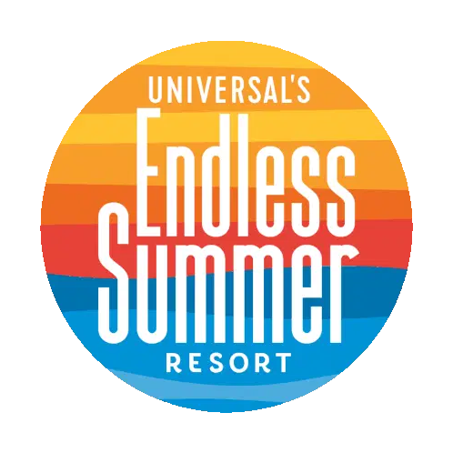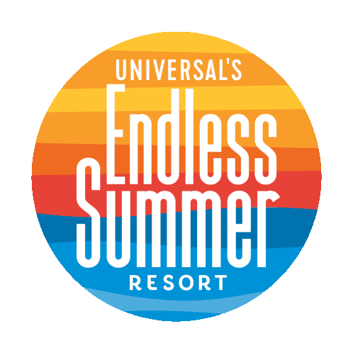Animated logo for Universal's Endless Summer Resort, featuring a vibrant sunset gradient and bold white text.