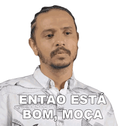 João Pimenta from Porta dos Fundos says 'Então Estábom Moça' with a resigned expression, perfect for accepting situations.