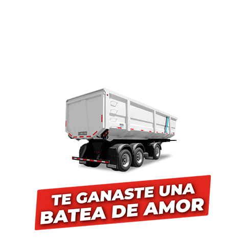 A white Randon truck trailer from Epysa Equipos, surrounded by hearts, with the message 'Te Ganaste Una Batea De Amor' (You Won A Bucket Of Love).