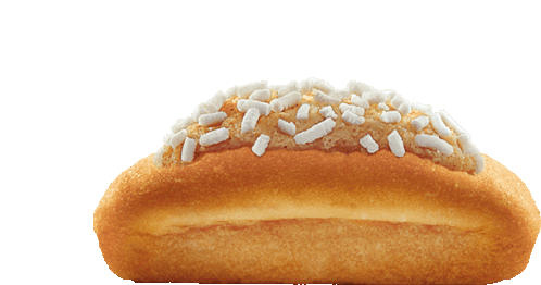 a bun with white sprinkles on top of it on a white background