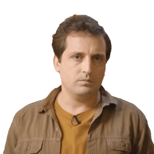 Gregório Duvivier looks surprised, raising his eyebrows and widening his eyes in shock.