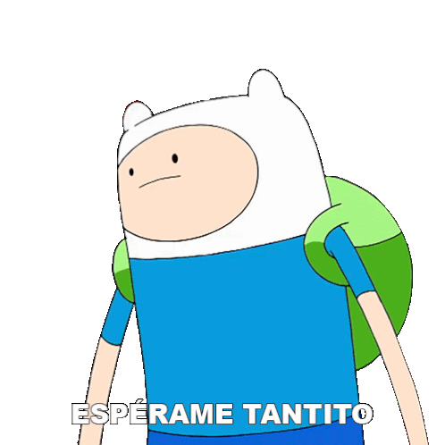 Finn from Adventure Time looks surprised and says 'Espérame Tantito' (Wait a moment for me) in this animated sticker.
