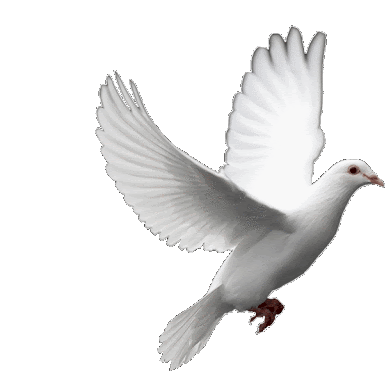A white dove, symbolizing Espiritu Santos, gracefully flies with outstretched wings, representing peace and spirituality.