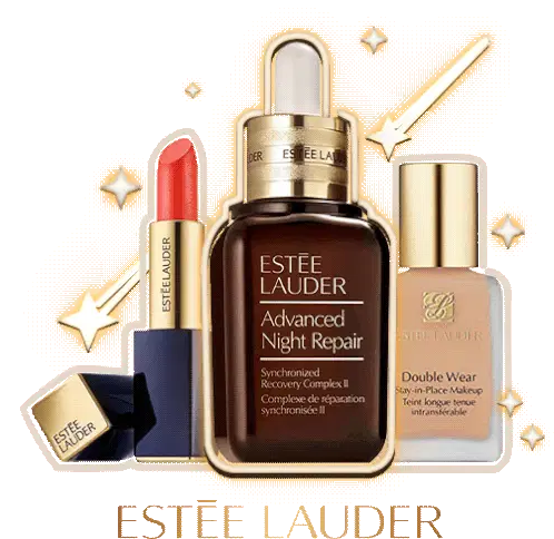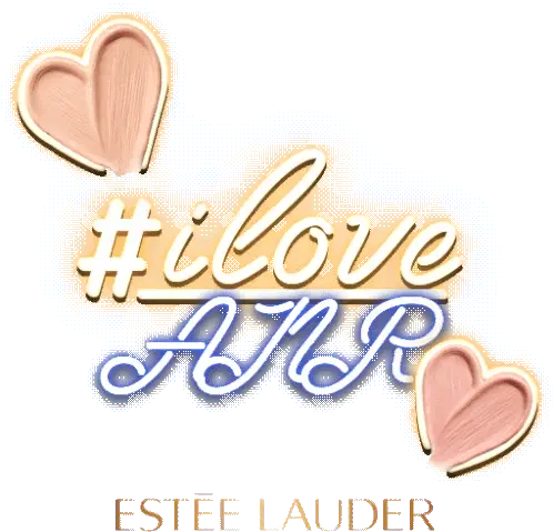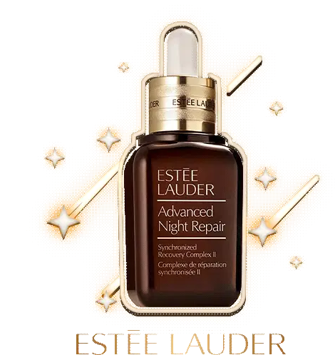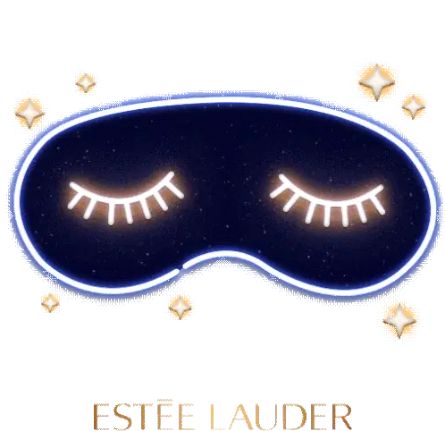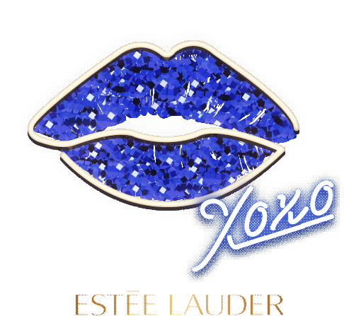 Sparkling blue glitter lips with 'XOXO' and 'Estee Lauder' branding, perfect for a glamorous touch. Features Advanced Night Repair theme.