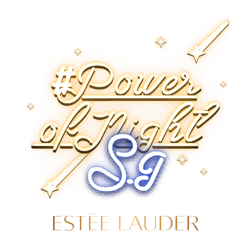 Experience the glow of Estee Lauder's Advanced Night Repair with the #PowerOfNight SG campaign, featuring sparkling golden text and stars.
