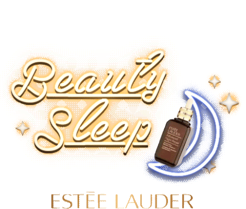 Estee Lauder Advanced Night Repair bottle with 'Beauty Sleep' text, glowing moon, and stars for skincare.