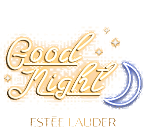 A glowing "Good Night" message with stars and a moon, featuring the elegant Estée Lauder brand name.