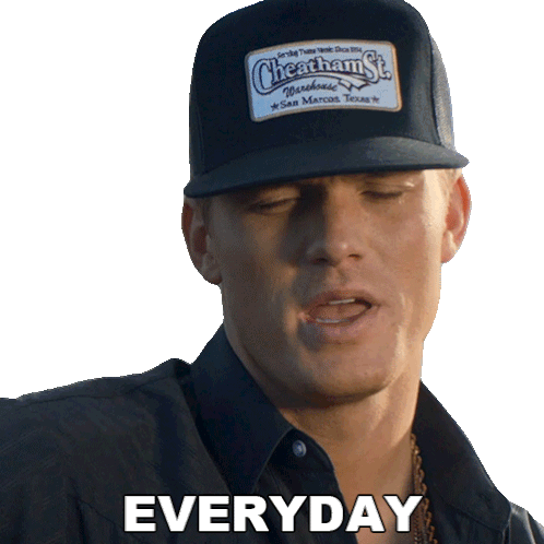 Parker McCollum, wearing a Cheatham St. hat, says "Everyday" with a thoughtful expression.