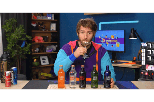 a man is drinking from a glass in front of a computer screen that says startcloud