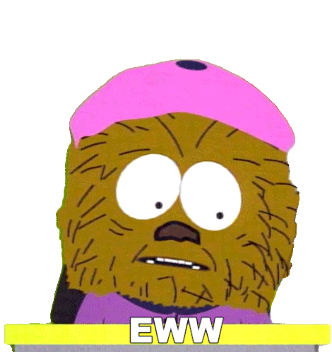 Wendy Testaburger from South Park, in a Chewbacca-like costume, reacts with a disgusted 'Eww'.