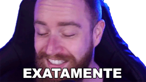 Luba, a man with a beard, smiles and nods in agreement as the word 'EXATAMENTE' (Exactly) appears below him.