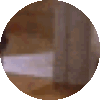 A blurred, circular image featuring an excited Seinfeld, conveying happiness and a joyful mood.