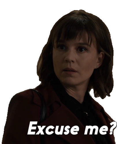 Kristen Bouchard from Evil looks surprised and asks 'Excuse me?' in a moment of disbelief or confusion.